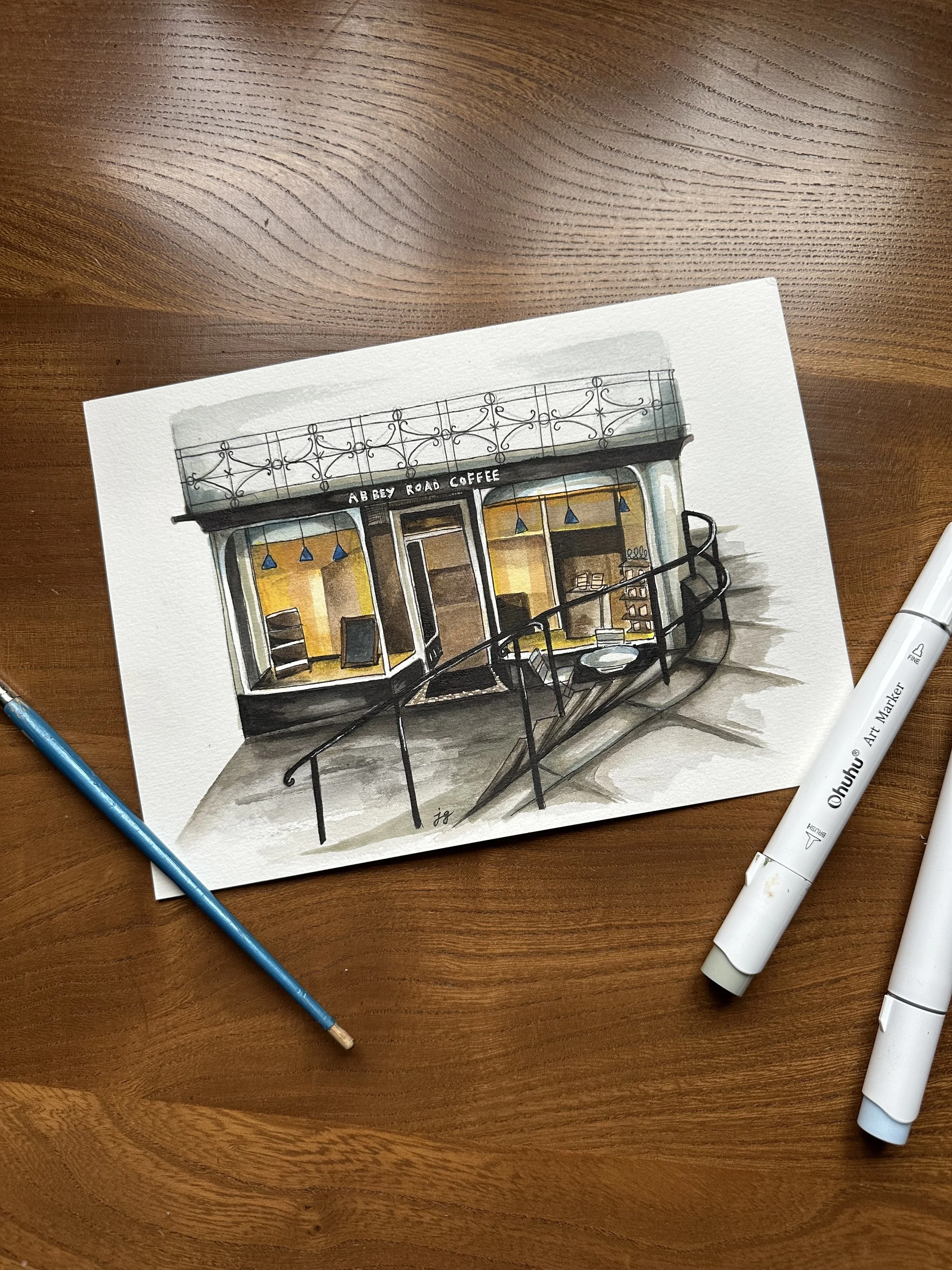 Providing a unique watercolour illustration of your shop front, alongside a digital file which can be used for websites, headers, leaflets, and thank you cards… the list is endless.